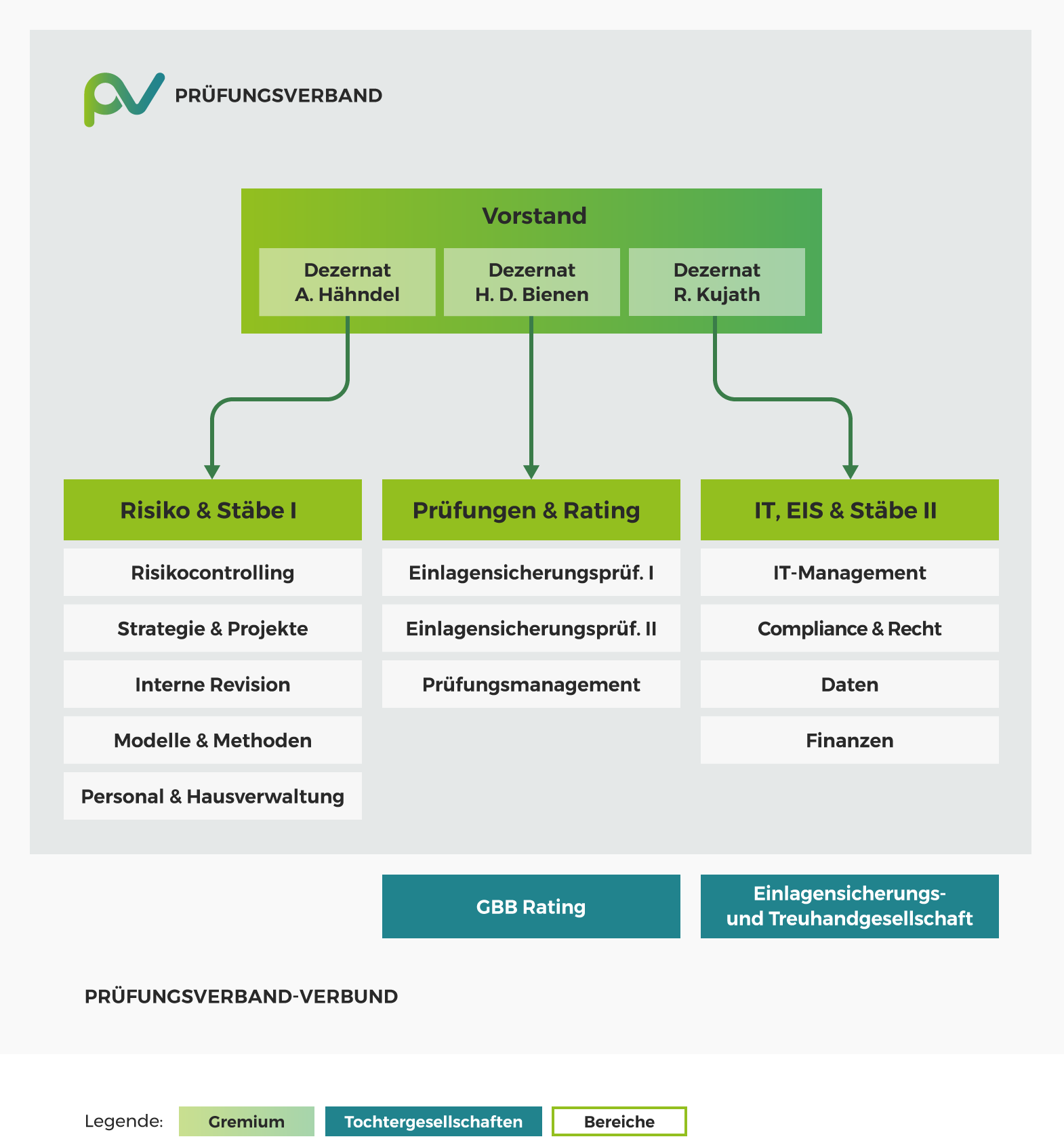 Der Vorstand des Prüfungsverbandes führt nach Maßgabe der Geschäftsordnung die laufenden Geschäfte des Verbandes. Alle Vorstandsmitglieder verfügen über umfassende Expertise im Bankensektor und haben langjährige Erfahrung im Risikomanagement bei international tätigen Banken bzw. in der Wirtschaftsprüfung. Derzeit besteht der Vorstand aus drei Mitgliedern.